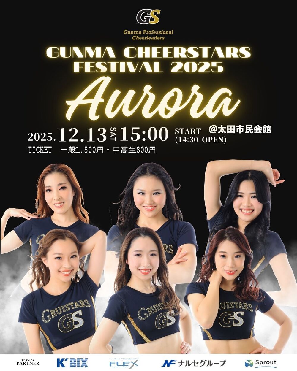 2025年12月13日のイベント 貸館情報 日時:2025年12月13日 GUNMA CHEER STARS FESTIVAL 2025~Aurora~ 催事名 GUNMA CHEER STAR... MORE